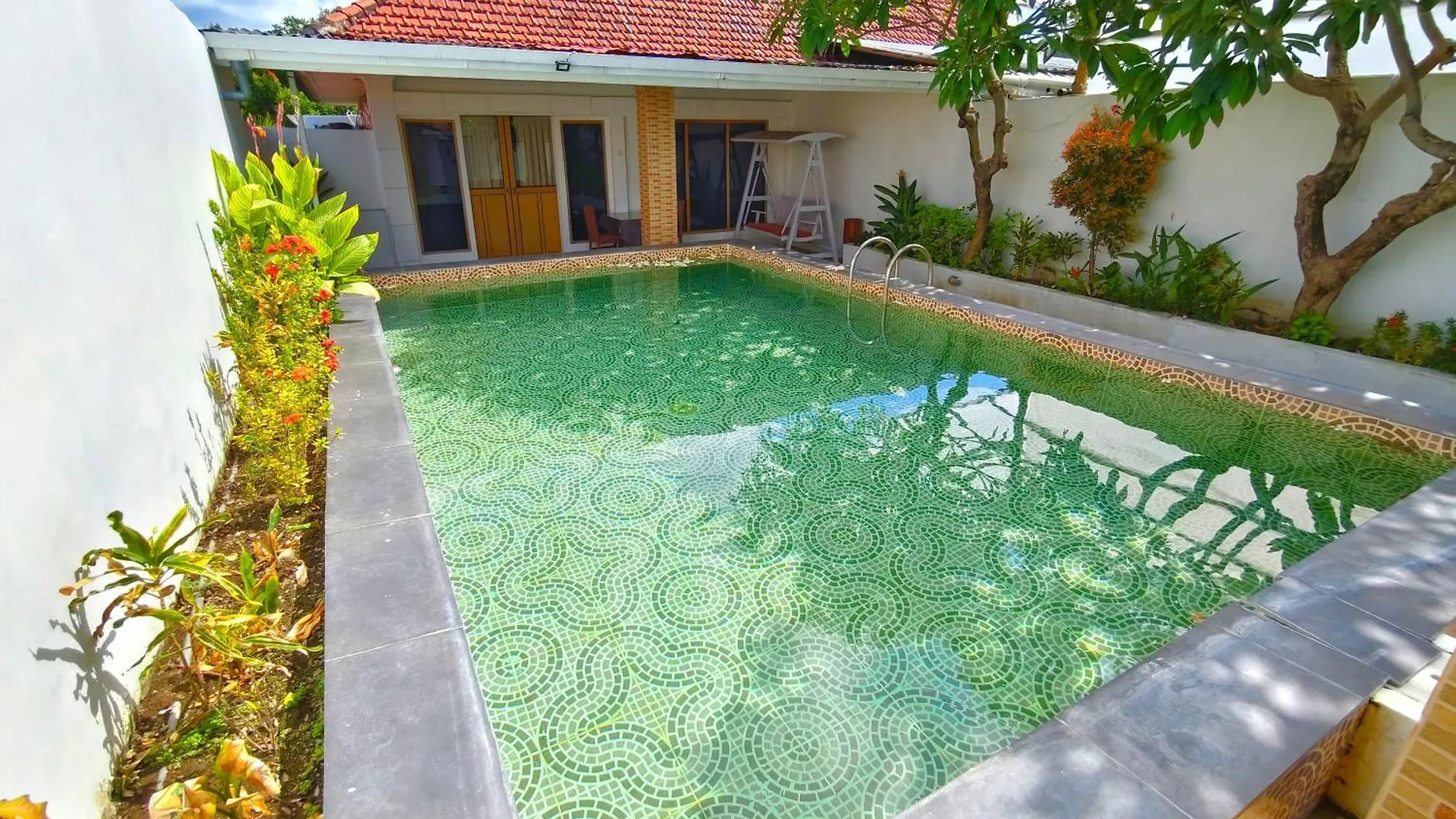 Las instalaciones de autoservicio incluyen hervidor eléctrico, nevera y cristalería, que se proporcionan en un comedor al aire libre. Los huéspedes pueden cenar en el restaurante McDonalds, situado a unos 10 minutos en coche. Gracias a la parada de autobús Bypass Ngurah Rai 1, situada a unos cuantos pasos de esta villa familiar, los huéspedes pueden explorar Badung fácilmente.